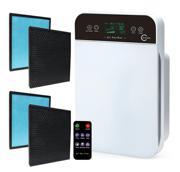Čistička vzduchu účinně odstraní z ovzduší roztoče, bakterie, prach, pyl, zvířecí srst, spory plísní, těkavé organické sloučeniny, cigaretový kouř, smog (částice PM 2,5) atd. Zařízení určené pro alergiky, astmatiky, majitele zvířat a všechny, kterým záleží na čistém vzduchu kolem sebe. Čistička vzduchu s filtrem HEPA třídy H10. Značka: Carruzzo Specifikace: dálkový ovladač dotykový ovládací panel velký čitelný displej výkon: 35-45W napájení: 230V 50Hz vysoce kvalitní ložiskový motor určený pro místnosti 35-50m2 účinnost čištění: 150-180m3/h noční tichý režim (nejnižší rychlost průtoku a zhasnutí kontrolek) automaticky regulovaná rychlost průtoku vzduchu monitorování kvality vzduchu v reálném čase časovač 1-8h teploměr třístupňová filtrace záporná ionizace sterilizace vzduchu náhradní filtr v sadě úroveň hluku: <55dB délka kabelu: cca. 1m rozměry: 56,5x32x16cm rozměry filtru: 34x27x2cm rozměry balení: 61x22x37cm Množství ks. na paletě: 36