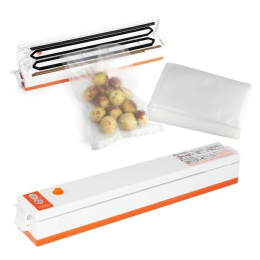 Díky technologii vakuového balení si uložené jídlo uchovává čerstvost mnohem déle a neztrácí chuť ani aroma (zároveň ostatní produkty v lednici nepřejímají vůni zabalených potravin). Vakuové balení se používá mimo jiné.in. během vaření metodou sous-vide. Takto připravované pokrmy jsou rovnoměrně uvařené a obsažená tekutina zůstává po celou dobu uvnitř, což dodává chuť a šťavnatost. Specifikace: napájení: AC 230V 50Hz výkon: 80W podtlak: 0,57bar max. šířka sváru: 295mm rozměry: 36,5x5,5x5cm délka kabelu: 1m 20ks. sáčků v sadě (25x17cm)