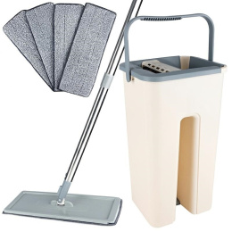 Plochý mop s dvoukomorovým kbelíkem je inovativní úklidová sada, která maximálně usnadňuje udržování čistoty ve vašem domě. Součástí této sady je pokročilý plochý mop a dvoukomorový kbelík. První komoru kbelíku tvoří nádoba na vodu nebo oblíbené čisticí prostředky, které můžete snadno smíchat, abyste účinně odstranili odolné nečistoty z podlah. Díky speciálnímu mechanismu ždímání mopu můžete kontrolovat množství vody na jeho povrchu, což umožňuje důkladné a rovnoměrné úklid. Druhá komora je pohodlné místo pro odsávání a vymačkávání mopu od přebytečné vody nebo čisticích prostředků. Tato funkce umožňuje udržovat hygienu během úklidu a zajišťuje optimální podmínky pro čištění podlah. Specifikace: délka mopu: 116,5 cm rozměry mycí hlavice: 32x12 cm rozměry kbelíku: 35,5x21x17 cm držadlo mopu vyrobeno z nerezové oceli s plastovými prvky 4 koncovky z absorpční mikrovlákna v sadě rozměry balení: 21x18x37 cm Produkt zabalen v dalším kartonu. Množství ks. na paletě: 96