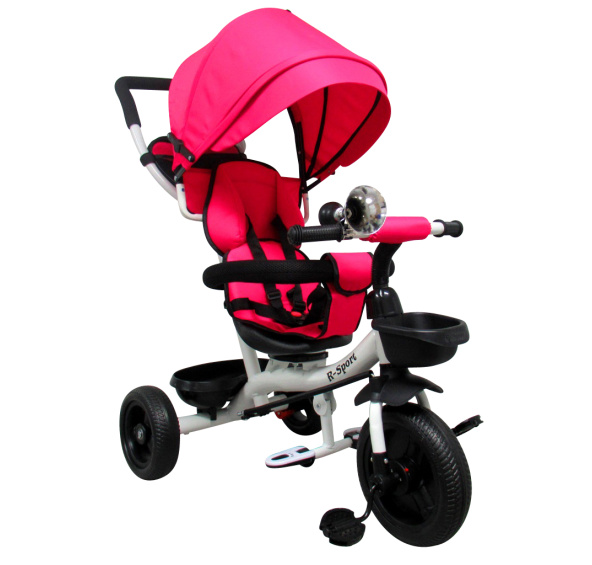Popis produktu R-Sport Dětská tříkolka s vodící tyčí bez brzdy T4, 360° otočná kola Růžová