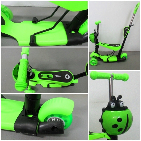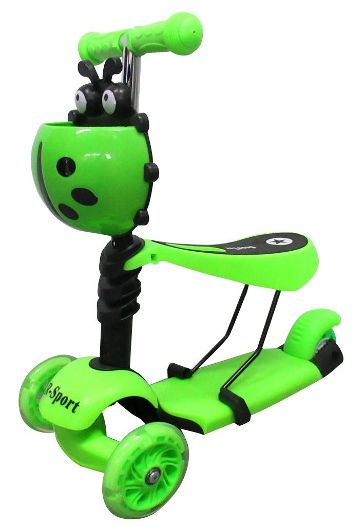S připevněným sedátkem poslouží zároveň jako odrážedlo. Koloběžka má navíc svítící LED kolečka a je zde možnost nainstalovat vodící tyč a mít koloběžku plně pod kontrolou.