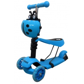 S připevněným sedátkem poslouží zároveň jako odrážedlo. Koloběžka má navíc svítící LED kolečka a je zde možnost nainstalovat vodící tyč a mít koloběžku plně pod kontrolou.