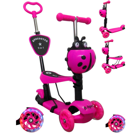 Popis produktu R-Sport Dětská tříkolová koloběžka DZ152 Růžová 5v1 s LED kolečky