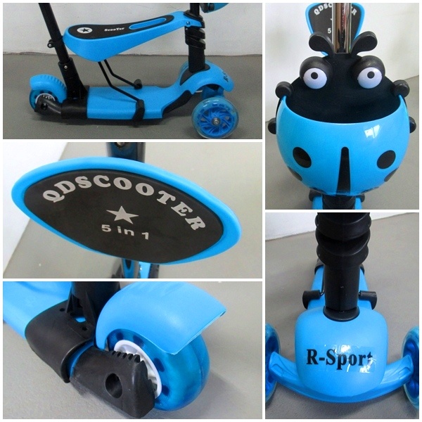 R-Sport Dětská třikolová koloběžka 5v1 s LED kolečky H3 Blue