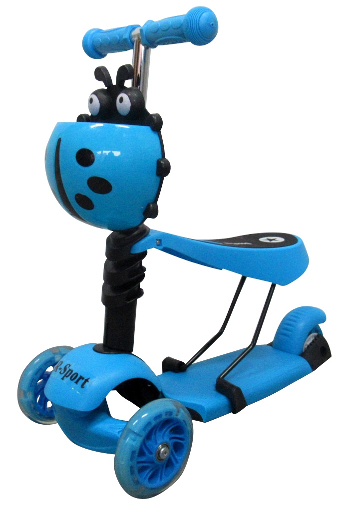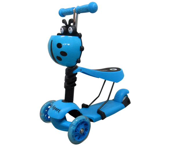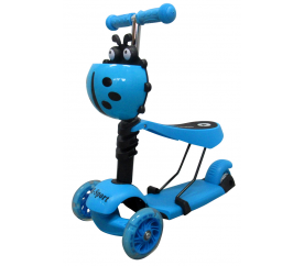 S připevněným sedátkem poslouží zároveň jako odrážedlo. Koloběžka má navíc svítící LED kolečka a je zde možnost nainstalovat vodící tyč a mít koloběžku plně pod kontrolou.
