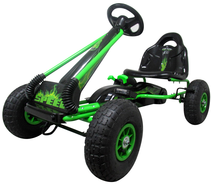 Vyrobeno z oceli s potisky závodních značek se sportovním volantem a nastavitelným sedadlem zaručují, že motokára není jedno sezónní záležitostí.
