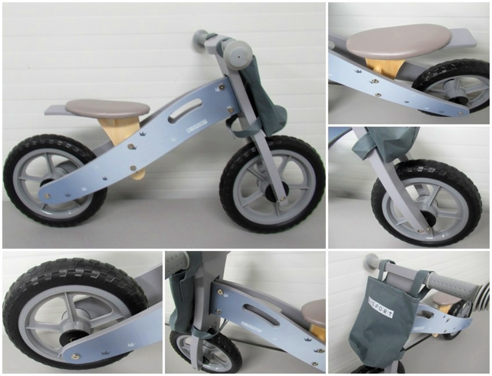Odrážedlo je vybaveno bezpečnými protiskluzovými gripy řídítek, měkkým výškově nastavitelným sedátkem a komfortními koly z tvrzené pěny s ložisky o průměru 12".