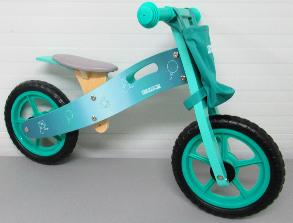 Dětské dřevěné odrážedlo, se zatáčecími řídítky, ergonomicky tvarovaným a výškově nastavitelným sedátkem.