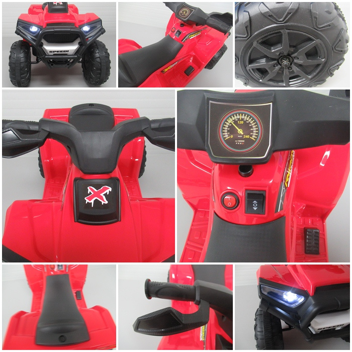 Čtyřkolka je vybavená elektrickým motorem s výkonem (25W) a baterií (6V).