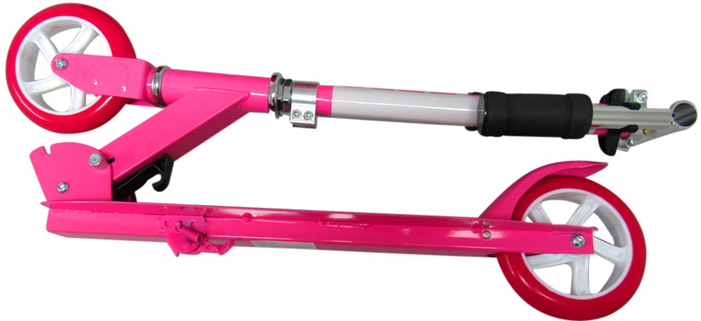 Koloběžku lze snadno složit a díky jednoduchému sklápěcímu mechanismu se zajištěním je posléze lehce přenosná.