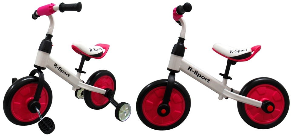 Odrážedlo lze bleskově transformovat na kolo, tříkolku nebo dokonce i odrážedlo s pomocnými kolečky pro ještě větší stabilitu.