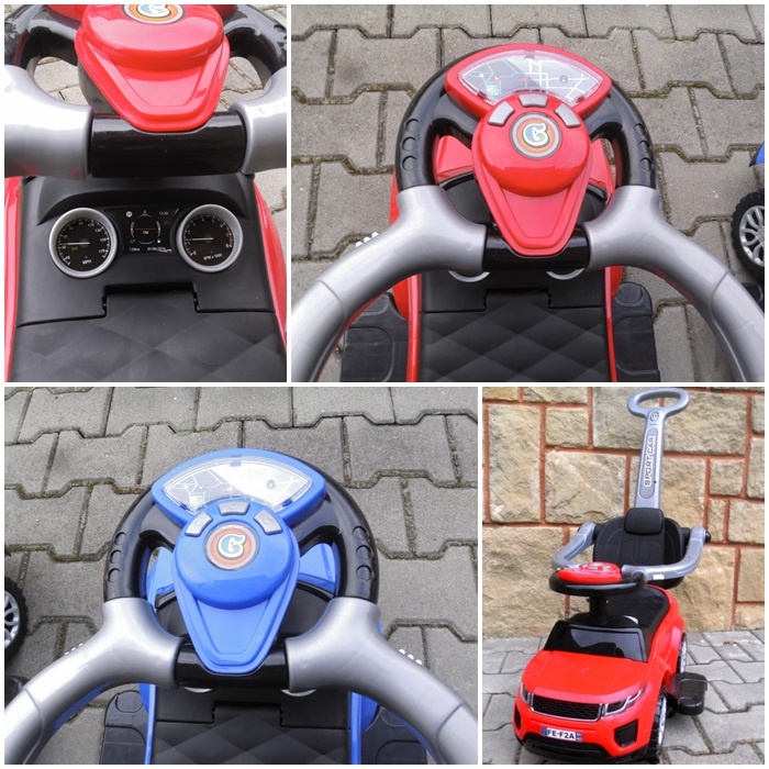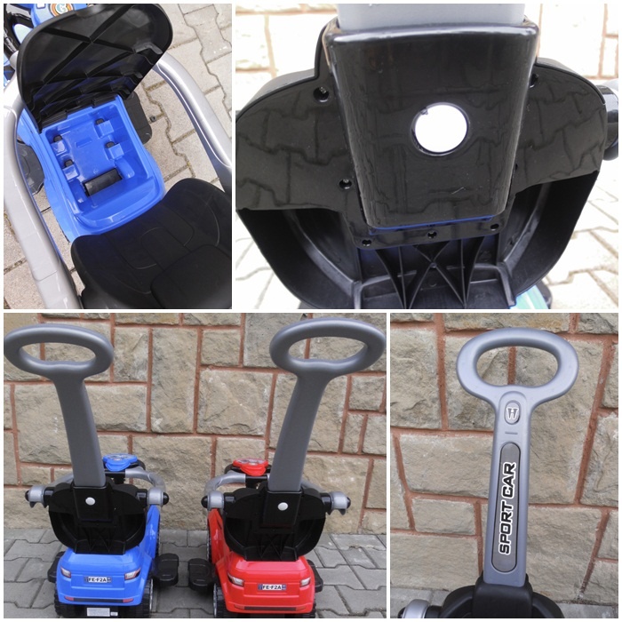 Během jízdy může dítě poslouchat melodie vycházející z interaktivního volantu, ve kterém je také klakson. Pod sedátkem odrážedla je úložný prostor.