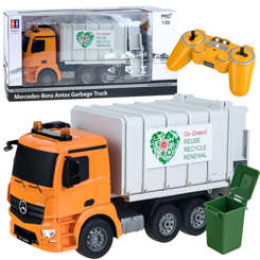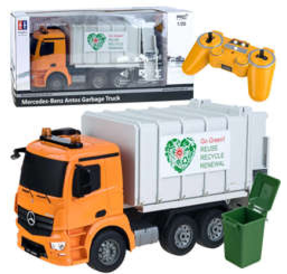Dálkově ovládané popelářské auto splní požadavky nejednoho pořádkumilovného hlídače. Auto se ovládá dálkovým ovladačem 2,4 GHz. Dálkové ovládání zajišťuje plné ovládání vozidla, veškerá práce malého řidiče a popelářského vozu bude probíhat bez námahy a pod plnou kontrolou. Dálkové ovládání umožňuje jízdu vpřed, vzad, otáčení vlevo a vpravo. Popelářské auto, jak se na skutečné vozidlo tohoto typu sluší, musí mít pohyblivý kbelík na odpadky, do kterého se odpadky nakládají, a dva šneky uvnitř, které odpadky vtahují. Senzační přední osvětlení LED je senzační v tmavší místnosti. Vozidlo je vybaveno obrovskými 6cm koly. Popelářský vůz je poháněn baterií, která je součástí dodávky, což výrazně snižuje provozní náklady.