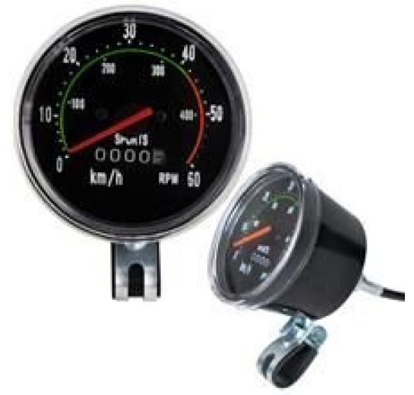 Mechanický tachometr pro použití na motokole, ale i na normálním kole.
