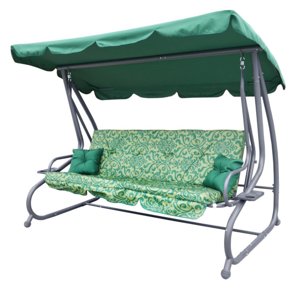 Popis produktu Rodinná zahradní houpačka se stříškou Zelený vzor + Textil 2x1 + Nastavitelné sedadlo + Matrace + 2 držáky na nápoje