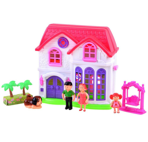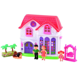 Elegantní rodinný domeček pro panenky poskytne každému dítěti skvělou zábavu. Sada je vyrobena výhradně z plastu v zářivých atraktivních barvách s nápadnou povrchovou úpravou domečku. Dům je rozkládací, s roztomilými reliéfními květinami a ptáčky na fasádě. Na každém patře si dítě může vytvořit individuální vzhled pokoje pomocí přiložených samolepek a různých kusů nábytku. Bonusem je zvonek se světelným efektem, takže vždy víte, že někdo vstupuje do domu. Figurky panenek mají pohyblivé ruce a otáčecí hlavu a jsou barevně oblečené.