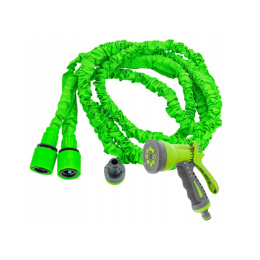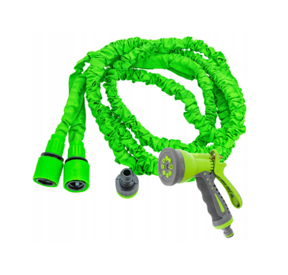 Hadice se pod vlivem vody roztáhne a poté se automaticky vyprázdní a smrští na původní velikost. Vyrobeno z vysoce kvalitních materiálů (ABS plast, latex a polyesterový popruh), takže po připojení k vodě se hadice roztáhne do správné velikosti a po skončení se smrští zpět na původní velikost. Ve srovnání s tradičními zahradními hadicemi je velmi lehká.