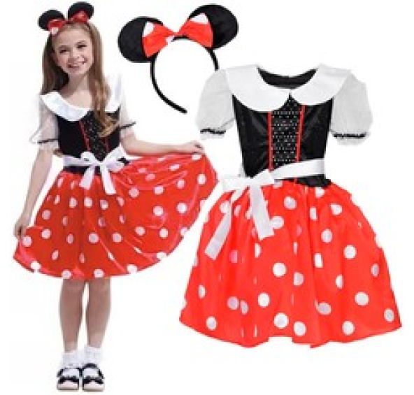 Tento roztomilý kostým inspirovaný populární myškou Minnie z pohádky od Disneyho se skládá z elegantních šatů s charakteristickou červenou sukní s bílými puntíky a čelenky s oušky a mašličkou, díky kterým se každá holčička bude cítit jako opravdová princezna v pohádkové zemi.Sada obsahuje: