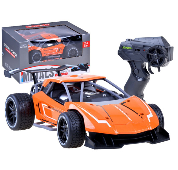 Super silné a rychlé auto v zářivě oranžové bar vě jistě zaujme každého (nejen dítě:), kdo má rád automobilové závody. Vůz se ovládá dálkově. Karoserie vozu je vyrobena z kovu, zatímco ostatní doplňkové prvky jsou z plastu, což přispívá ke skvělému vzhledu tohoto sportovního vozu. Vše bylo vyrobeno s velkou přesností a důrazem na nejmenší detaily, takže auto vypadá velmi realisticky. Jeho promyšlená konstrukce a hmotnost se 4 gumovými koly přispívají k jeho přilnavosti k zemi a umožňují mu jezdit na dráze rychlostí až 15 km/h! Jeho konstrukce není tuhá, a proto je mimořádně odolný vůči nečekaným nehodám, ke kterým dojde během jízdy.
