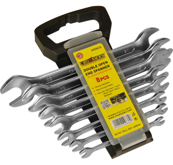 Všestranné použití: Sada 8 oboustranných vidlicových klíčů vám umožní manipulovat s různými velikostmi šroubů a matic, díky čemuž je ideální pro mnoho aplikací v dílně, domácnosti nebo opravě.