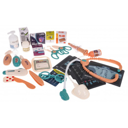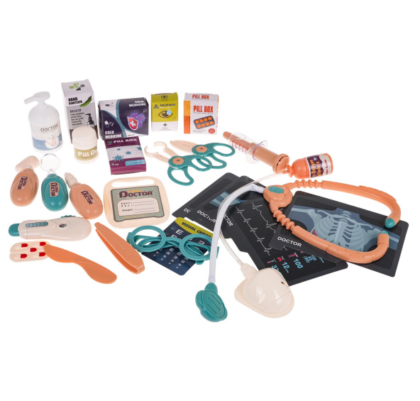 Kočárek je vybaven monitorovacím panelem, který přehrává zvuky srdečního tepu a budíku, a také má vyměnitelné EKG a rentgenové snímky. To nejen poskytuje další zábavu, ale také učí děti základy anatomie. Sada obsahuje také stetoskop, teploměr s nastavitelnou teplotou, tlakoměr a dokonce i zubní zrcátko. Pro malé chirurgy je k dispozici příslušenství, jako je skalpel, nůžky, kleště a reflexní kladívko.