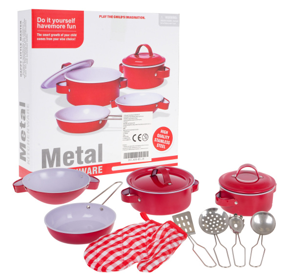 Sada kovových květináčů pro děti od 3 let. Sada obsahuje dva hrnce s pokličkami, misku a pánev a pouze rukavici a kuchyňské náčiní. Hrnce se klamně podobají těm pravým. Nejenže krásně vypadají, ale jsou také odolné a robustní.