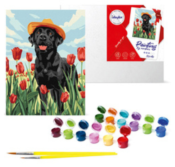 Malování na plátno podle čísel „Roztomilý Labrador“ – relaxační a kreativní zábava pro teenagery!