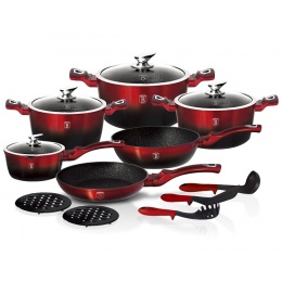 Popis produktu Sada nádobí s mramorovým povrchem 15 ks Black Burgundy Metallic Line - BERLINGERHAUS
