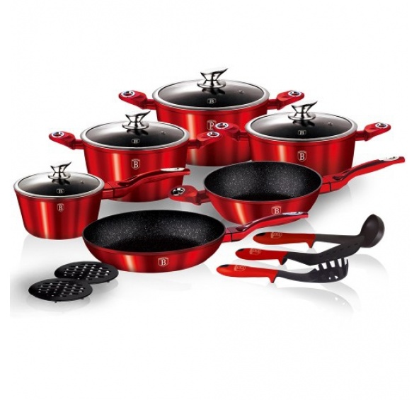 Sada nádobí s mramorovým povrchem 15 ks Burgundy Metallic Line - BERLINGERHAUS