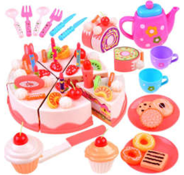 Představujeme sadu, se kterou bude moci každá malá hostitelka uspořádat nezapomenutelnou party. Součástí sady je dort, který lze různě zdobit, krájet a podávat hostům. Součástí je i další občerstvení, např.. koláčky, sušenky atd.
