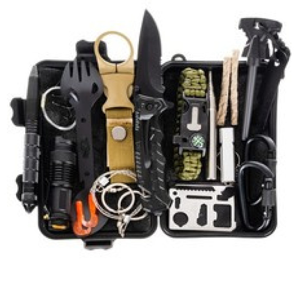 - 32 v 1 - sada obsahuje: strunová pila 60 cm dlouhá, zavírací nůž s pilkou a strunový nůž , taktické pero, karta přežití 11 v 1, tinder s hořčíkovou tyčí a skládací talíř s cm měřítkem a otvírákem na láhve, svítilna - napájená AA baterií (baterie není součástí balení), tepelná přikrývka 130 x 210 cm, uzamykatelná úložný kontejner, držák na láhev na opasek, páska na paracord - cca 350 cm paracord šňůra s kompasem, píšťalkou a odpalovačem - vše ve formě pásku, 2 silikonové návnady + vlasec + 2 háčky, náležitosti - lžíce s vidličkou a otvírákem na láhve + nůž, skládací požární trubice, zapalovací struna 2 ks, klipový háček 2 ks Jedná se o velmi velkou sadu, která vám umožní přežít ve velmi obtížných podmínkách.