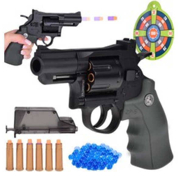 Popis produktu Sada Revolver praktická Pistole na pěnové náboje + gelové kuličky ZA5317 univerzální