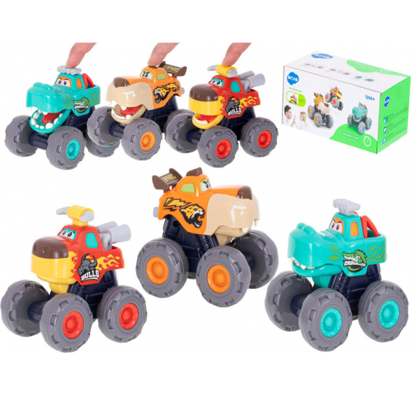 Každé vozidlo na střeše má tlačítko, po jehož stisknutí zvíře otevře tlamu. Vozidla ve tvaru lva a býka jsou vybavena pohonem - stačí zatáhnout za zadní kola a postavit vozidlo na podlahu, aby se samo pohnulo vpřed. Vozidla ve tvaru zvířátek jsou návrhem pro vynikající hru, která podporuje správný vývoj dítěte. Výrazné barvy a neobvyklý tvar přitahují pozornost dětí a vybízejí je ke hře. Jsou velmi lehké a díky malým rozměrům je můžete vzít s sebou na cesty. Úspěšně se vejdou do batohu nebo kabelky.