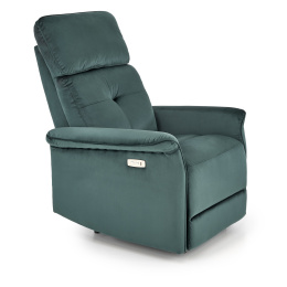 Popis produktu SEMIR fotel z funkcja elektrycznego rozkładania / gniazdo USB, ciemny zielony (2p=1szt)wymiary: 80/90-170/92-108/46 cm, fotel z funkcją elektrycznego rozkładania / gniazdo USB, materiał: tkanina - velvet, kolor: zielony - BLUVEL 78