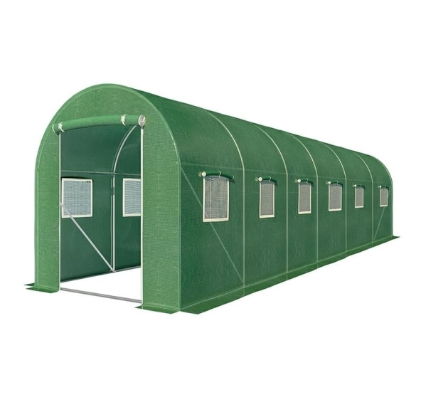 Zahradní fóliový tunel poskytuje optimální ochranu plodin, prodlužuje sezónu plodnosti a umožňuje zvýšit výnosy sklizně. Rám vyrobený z ocelových, oboustranně pozinkovaných profilů. Montáž pomocí šroub zajišťuje stabilitu a pevnost konstrukce. Průhledná, vrstvená fólie PE 140g/m2. Uzamykatelná okna s moskytiérami umožňují přívod čerstvého vzduchu a kontrolu úrovně vlhkosti. Tunel je vybaven širokými, rolovacími dveřmi se zámkem. Optimální výška skleníku (200 cm) umožňuje volný pohyb a provádění prací.