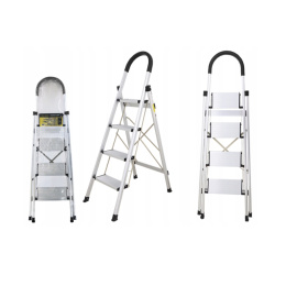 Práce v domácnosti, jako je malování nebo opravy Použití v knihovnách, na půdách nebo v garážích Práce na zahradě, jako je práce ve výškách nebo kolem bazénu Jiné úkoly vyžadující bezpečný přístup na vyvýšená místa ✨Technické parametry: Materiál: Hliník Počet schůdků: 4 Maximální výška: 143 cm Šířka schodu: 13,5 cm Čistá hmotnost: 5 kg Rozměr balení: 160 x 55 x 30 cm