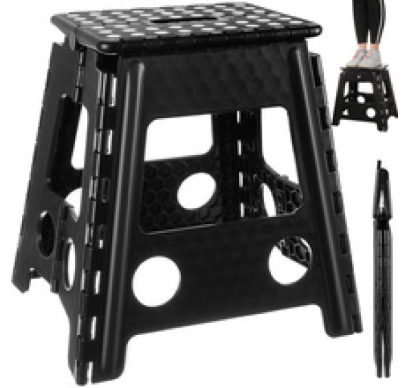 Plně skládací stolička, velmi snadná na přepravu a skladování. Výrobek je vybaven protiskluzovou vrstvou, díky které je použití bezpečnější. Plošinu využijete k dosažení vysoké police, natírání stropu při renovaci, zavěšení lustru nebo zavěšení závěsů. Výrobek je také perfektní jako platforma pro děti - například k dosažení umyvadla.