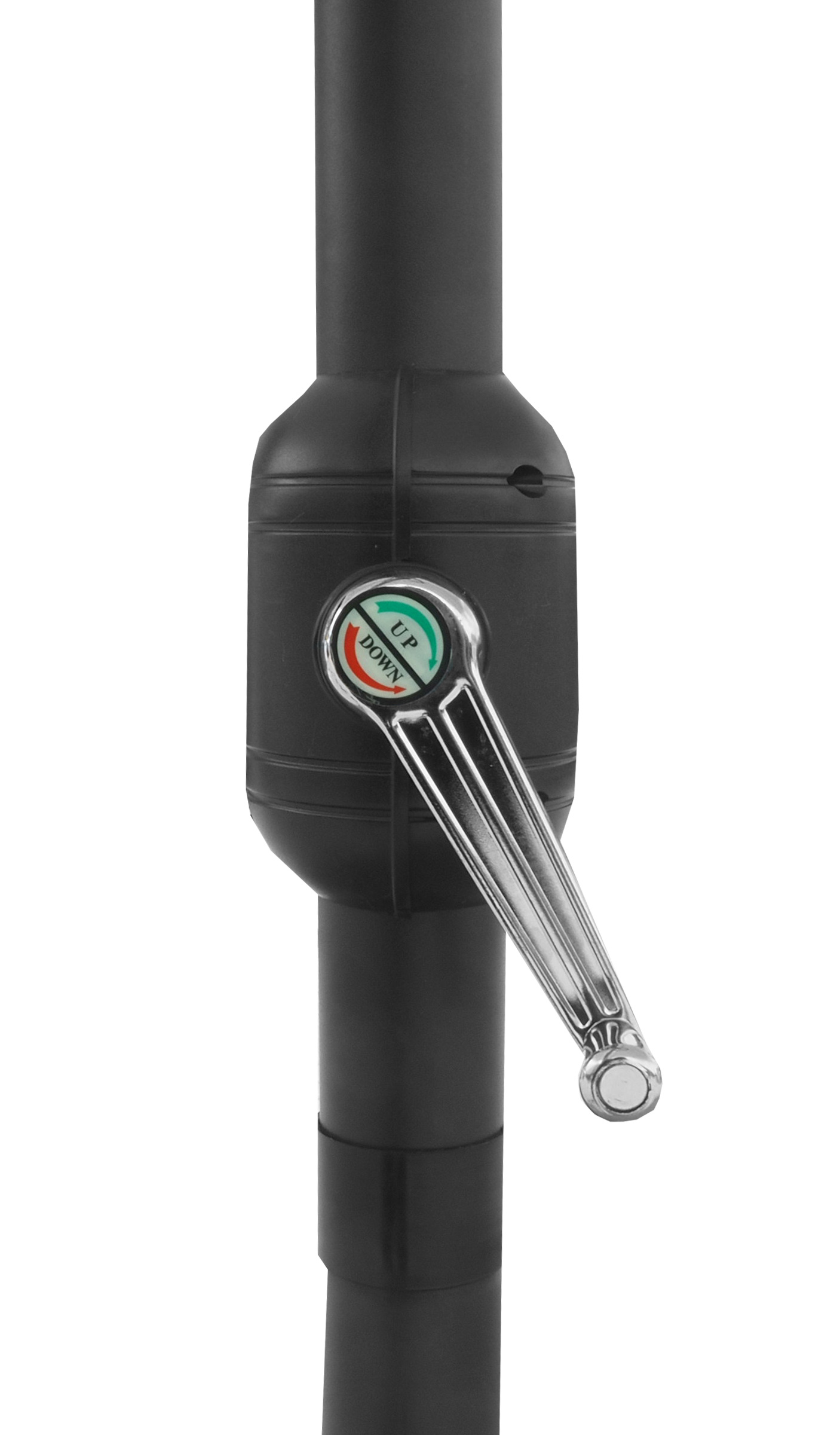 Snadnou manipulaci při rozkládání a skládání slunečníku zajišťuje jednoduchý klikový mechanismus.