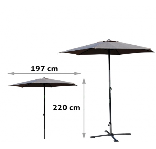 Slunečník je vyrobený z kvalitního polyesterového materiálu, je odolný vůči povětrnostním a klimatickým vlivům a je nenáročný na údržbu a snadno se skladuje.