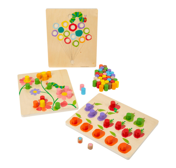 Small foot Barevná hra Caterpillar - kam patří která barva? Tato hra obsahuje 95 dílků, které musíte barevně přiřadit k herní desce. Tři herní desky s dohromady šesti obrázky. Vzdělávací hra, která procvičuje poznávání barev a jemnou motoriku. Herní desky z pevného dřeva mají velmi kvalitní potisk, můžete je uložit do textilního pytlíku, jsou ideální na cesty. Hlavní vlastnosti: obsahuje 95 dílkůprocvičuje poznávání barevideální na cesty