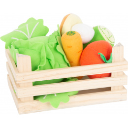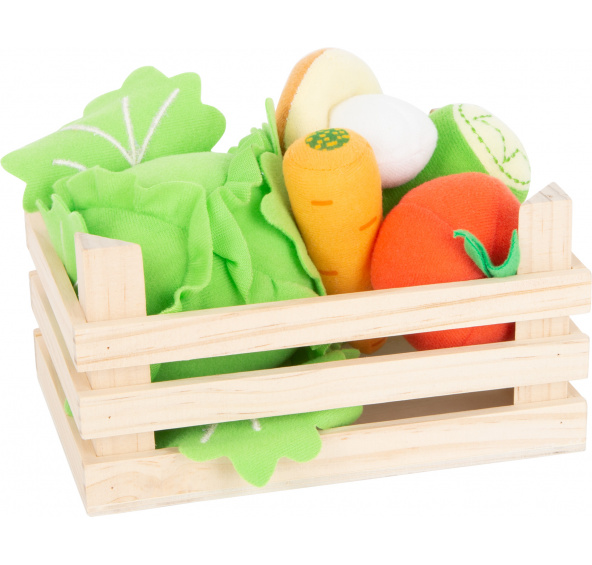 Zelenina je tak chutná! Tento set zeleniny se hodí do každé dětské kuchyňky, prodejního stánku a nebo jen tak. Dřevěná přepravka je naplněna okurkou, mrkví, rajčetem, hříbkem a salátem, které jsou plyšové. Listy salátu jsou připevněny suchým zipem, děti tak mohou salát „natrhat“. Hračka trénuje motoriku a inspiruje děti ke kreativitě. Naučte své děti o důležitosti zdravé a vyvážené stravy. Hlavní vlastnosti: sada obsahuje 5 kusů zeleniny v bedýncevhodné do dětského obchůdku či kuchyňkypodporuje motorické dovednosti a hraní rolí