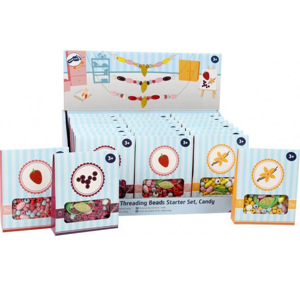 Set 24 korálí. Návrháři šperků, zpozorněte! Tento set korálků dá prostor Vaší kreativitě a představivosti. Barevné dřevěné korále a roztomilé přívěsky jsou uloženy v obalech na sladkosti, můžete je vyměňovat s přáteli. Jahoda, vanilka nebo borůvka – každý si najde svou barvičku! Jsou kompatibilní s LE11248 a LE11249, děti si tak můžou nasbírat všechny typy korálků.