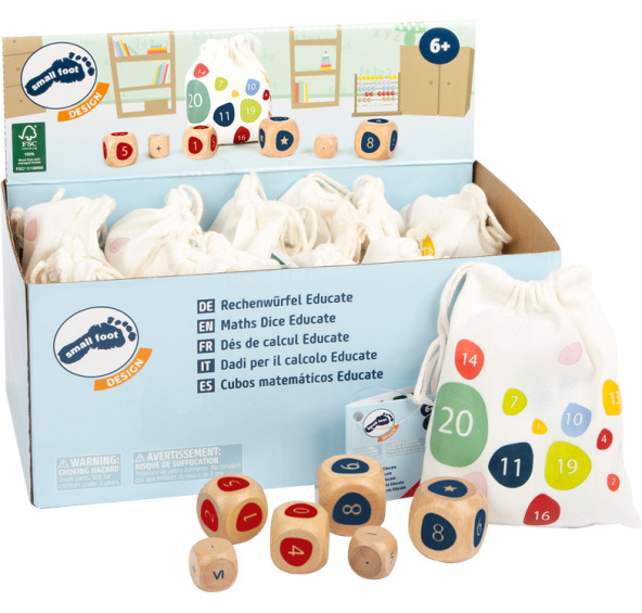 Pytlíček naplněný matematickými problémy. Obsahuje šest matematických kostek vyrobených ze 100% certifikovaného FSC® dřeva. Nabízejí nespočet kombinací matematických příkladů, sčítání, odčítání, násobení, dělení. Aritmetika náhodně, děti se tak nebudou nudit. Můžete ztížit úroveň počtů odebráním některých kostek. Hlavní vlastnosti: 6 matematických kostek v praktickém balenípočtem kostek lze ovlivnit obtížnostprocvičování matematických příkladů hravě Značka a certifikát FSC® (Forest Stewardship Council) zaručuje, že dřevo, ze kterého byl produkt vyroben, nebylo vytěženo nelegálně a pochází z lesů obhospodařovaných šetrným či přírodě blízkým způsobem, ve kterém jsou dodržovány přísné environmentální a sociální požadavky. Značka FSC® na výrobku znamená, že svým nákupem pomáháte chránit lesy a podporujete šetrné, odpovědné či přírodě blízké hospodaření, díky kterému jsou naše lesy stabilnější, zdravější, mají přirozenou druhovou skladbu a lépe odolávají negativním následkům klimatických změn.