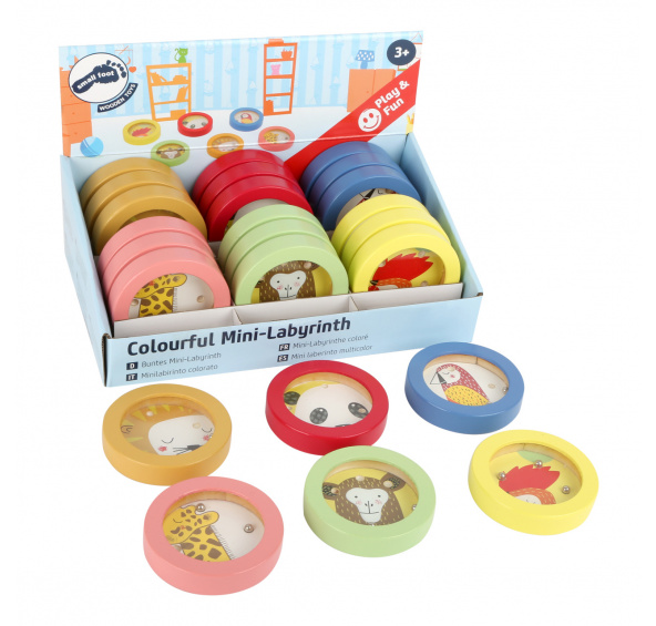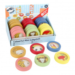 Přemístěte nakláněním kuličky do připravených prohlubní. Minilabyrinty jsou nestárnoucí klasikou mezi hračkami. Jejich prostřednictvím lze cvičit jemnou motoriku a soustředění. Dětskou pozornost hravě zaujmou atraktivní barevností a nápaditými zvířecími motivy. Díky své kompaktní velikosti může děti tato zábava snadno provázet na cestách. Jsou vyrobeny z kombinace dřeva a nezávadného akrylátu, mohou proto nabídnout vysokou odolnost a životnost. Hlavní vlastnosti:24 ks v displeji6 různých variant na výběrkompaktní velikostatraktivní a odolné zpracování