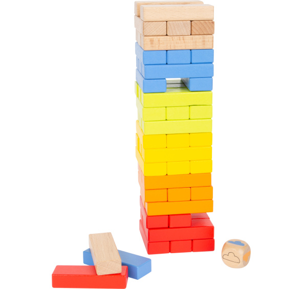 Populární barvy duhy dělají jengu speciální. Ke hře budete potřebovat soustředěnost a zručnost. Jenga se hraje takto – hodíte kostkou a podle toho jaká barva padne musíte vytáhnout stejně barevný dílek z věže, ale bez toho, aby celá spadla! Pokud vás jenga omrzí, můžete si z dílků stavět dle fantazie. Tak kdo prokáže nejjistější ruku a vyhraje?Tato barevná hra se hodí k Small Foot Skládací věži duze Duo (11720) a Small Foot Dřevěnému chodítku Elephant (11607). Hlavní vlastnosti: pestrobarevné dílkyhra pro malé i velkétrénuje zručnost, soustředění a jemnou motoriku