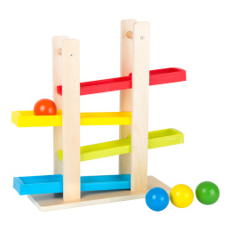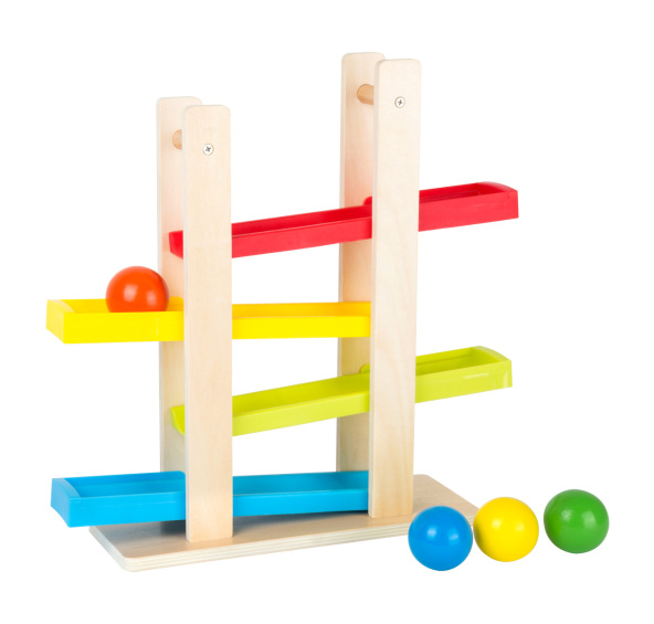 Tato malá kuličková dráha nabízí skvělou zábavu a vypadá opravdu skvěle. Vaše dítě se rychle pokusí nechat 4 dřevěné kuličky projet dráhou. Tím získává první cit pro rychlost a účinek sil. Vzdělávací hra podporuje vaše dítko v rozvoji jeho obratnosti a zdokonalování jeho kombinatorických dovedností. Díky pestrým barvám je hračka ideálním doplňkem do dětského pokojíčku či školky. Hlavní vlastnosti: pestře barevný design zaručená zábava se 4 kuličkami