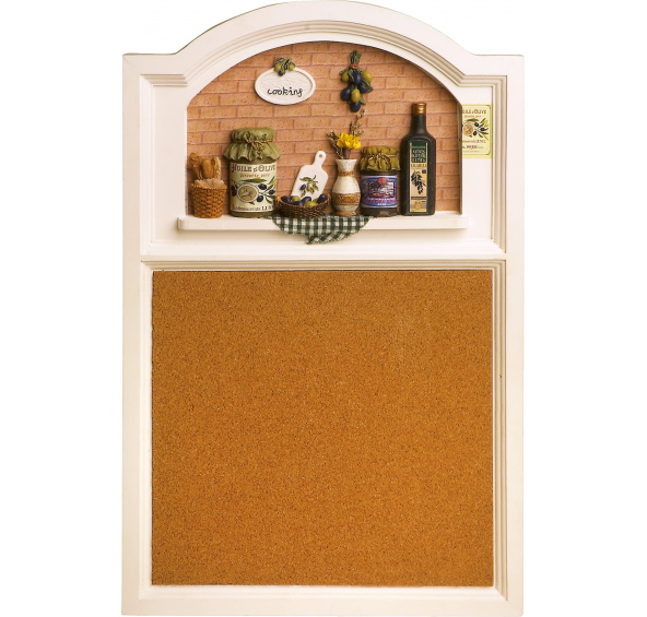 Tato korková nástěnka do kuchyně je dekorativní a praktická zároveň. Krásné detaily dávají kuchyni středomořský vzhled.
