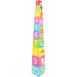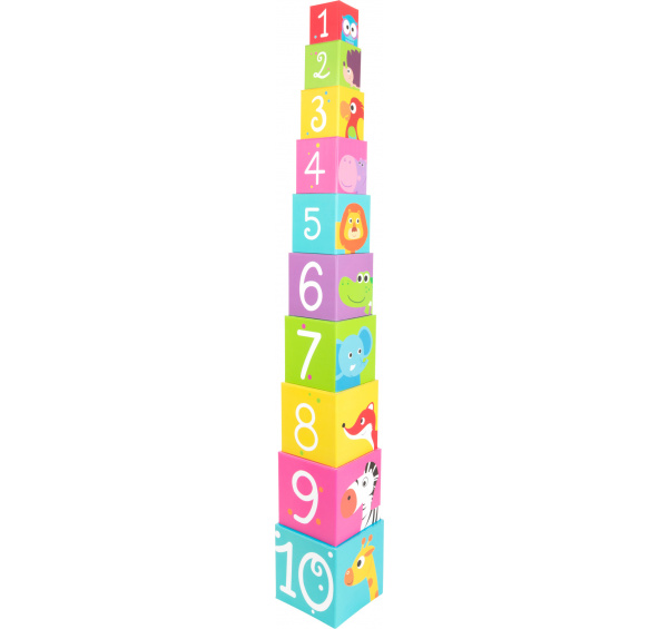 Jak vysoko dokážete skládat? Tato veselá zvířátka zvou všechny malé stavitele ke skládání. Deset lehkých a stabilních kostek je vyrobeno z lepenky. Mají barevný potisk se zvířátky a čísly. Děti si s nimi procvičí motoriku a soustředěnost. Kostky můžete uložit do sebe, nezaberou tak mnoho místa. Děti si procvičí rozpoznávání zvířat i čísel. Hlavní vlastnosti: duté kostky, můžete je uložit do sebeprocvičují motoriku a soustředěnostpomáhají s rozpoznáváním čísel, barev a zvířatvyrobeno ze 100% FSC® dřeva Značka a certifikát FSC® (Forest Stewardship Council) zaručuje, že dřevo, ze kterého byl produkt vyroben, nebylo vytěženo nelegálně a pochází z lesů obhospodařovaných šetrným či přírodě blízkým způsobem, ve kterém jsou dodržovány přísné environmentální a sociální požadavky. Značka FSC® na výrobku znamená, že svým nákupem pomáháte chránit lesy a podporujete šetrné, odpovědné či přírodě blízké hospodaření, díky kterému jsou naše lesy stabilnější, zdravější, mají přirozenou druhovou skladbu a lépe odolávají negativním následkům klimatických změn.