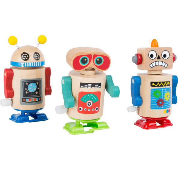 Pozor, roboti jsou na útěku! Tito zábavní, barevní kamarádi jsou vyrobeni ze 100% certifikovaného FSC® dřeva. Natahovací roboti pochodují a hýbají pažemi, které jsou k tělu připevněny gumičkami. Tři typy robotů, každý má jiný tvar a vzor. Hlavní vlastnosti: Podporuje jemnou motorikuVyrobeno z 100% FSC dřeva Značka a certifikát FSC® (Forest Stewardship Council) zaručuje, že dřevo, ze kterého byl produkt vyroben, nebylo vytěženo nelegálně a pochází z lesů obhospodařovaných šetrným či přírodě blízkým způsobem, ve kterém jsou dodržovány přísné environmentální a sociální požadavky. Značka FSC® na výrobku znamená, že svým nákupem pomáháte chránit lesy a podporujete šetrné, odpovědné či přírodě blízké hospodaření, díky kterému jsou naše lesy stabilnější, zdravější, mají přirozenou druhovou skladbu a lépe odolávají negativním následkům klimatických změn.