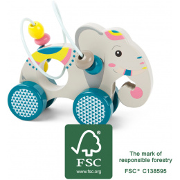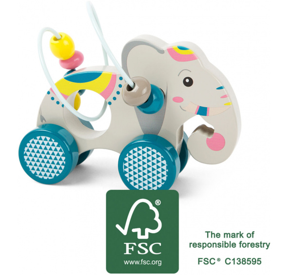 Tento pestrobarevný slon je vyroben ze 100% FSC® dřeva a děti si při hraní s ním procvičí motoriku. Barevné korálky na drátku jsou také pěkným doplňkem. Díky kolečkům mohou děti slona dopravit kamkoliv chtějí. Hlavní vlastnosti: barevná motorická hračka100% FSC® dřevo Značka a certifikát FSC® (Forest Stewardship Council) zaručuje, že dřevo, ze kterého byl produkt vyroben, nebylo vytěženo nelegálně a pochází z lesů obhospodařovaných šetrným či přírodě blízkým způsobem, ve kterém jsou dodržovány přísné environmentální a sociální požadavky. Značka FSC® na výrobku znamená, že svým nákupem pomáháte chránit lesy a podporujete šetrné, odpovědné či přírodě blízké hospodaření, díky kterému jsou naše lesy stabilnější, zdravější, mají přirozenou druhovou skladbu a lépe odolávají negativním následkům klimatických změn.